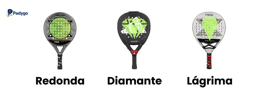 Forma de la pala de pádel: Redonda, diamante e híbrida